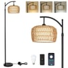 Arc Floor Lamp, Dimmable Rattan Floor Lamp With Remote & LED Bulb