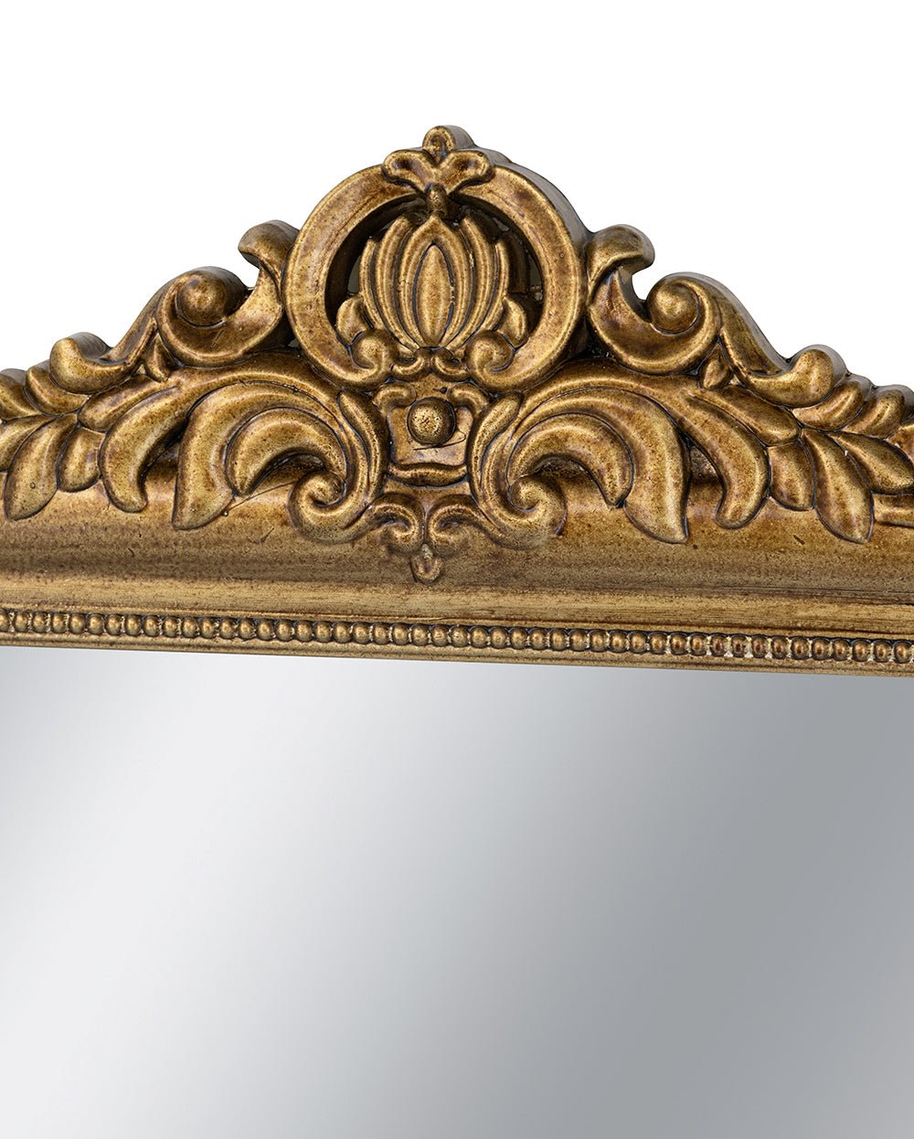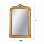 Drawing inspiration from the opulent beauty of Rococo art, this accent mirror showcases an arched silhouette, a gleaming gold finish, and a captivating crest at the top. Whether displayed in your living room, entryway, or bedroom, it will effortlessly complement any interior style, serving as a lasting statement piece.