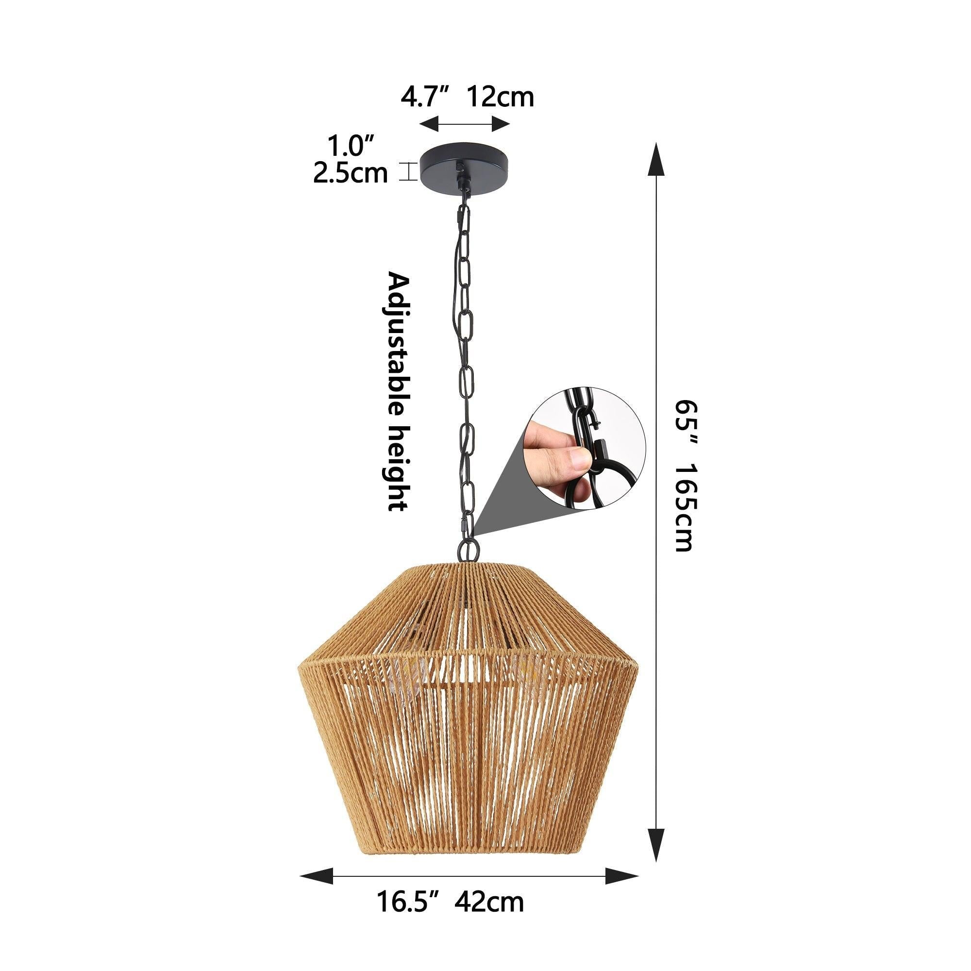 Boho Hemp Rope Pendant Light, Handcrafted Farmhouse Hanging Light Fixture for Kitchen Island
