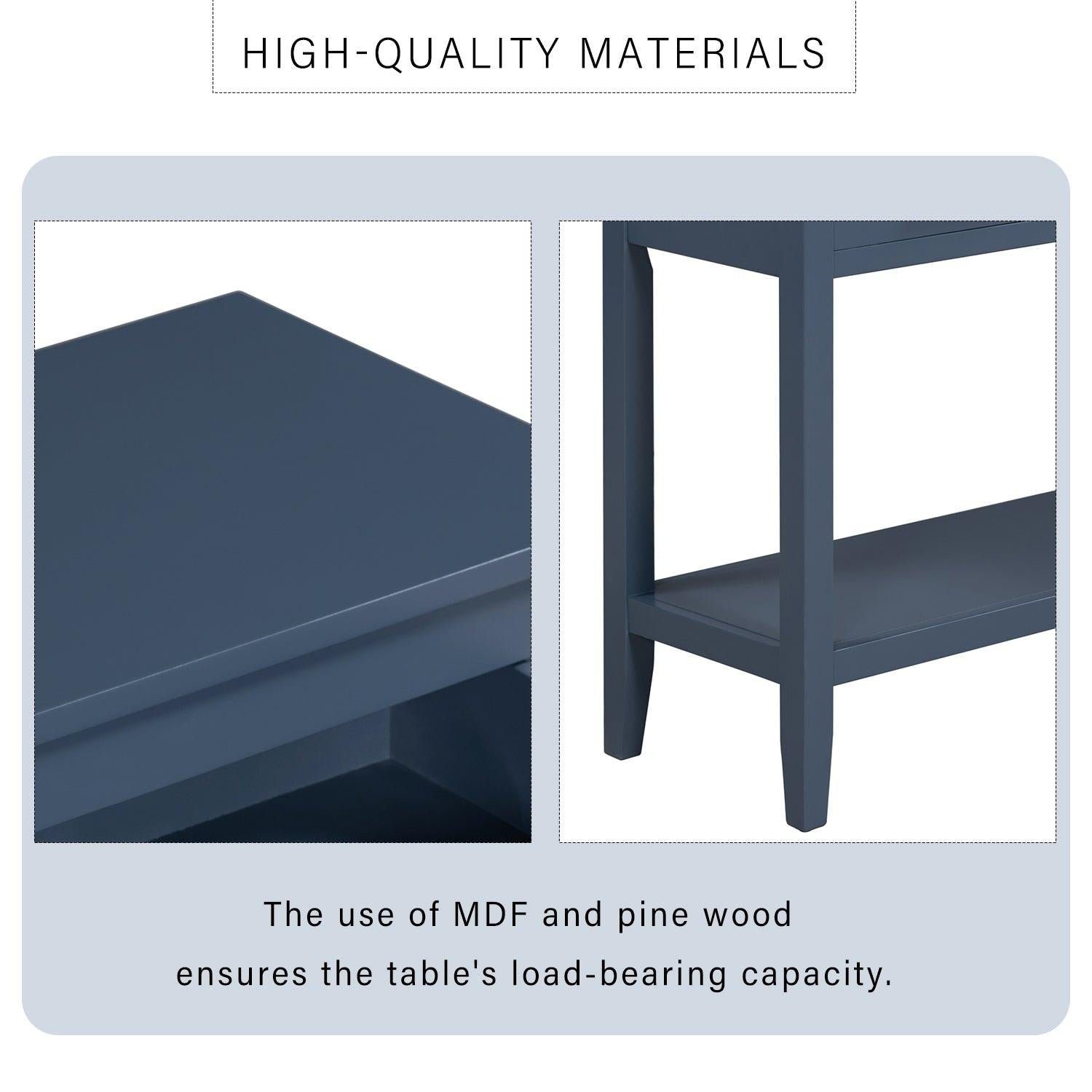 Specifications Place of Origin #originPlace# Main Color Navy Blue Main Material MDF Product Style American Design Use Case Primary Living Space Dangerous Goods #dangerFlag# Dimensions & Weights Assembled Length (in.) 59.10 Assembled Width (in.) 13.80 Assembled Height (in.) 31.70 Weight (lbs) 59.00 Product Features