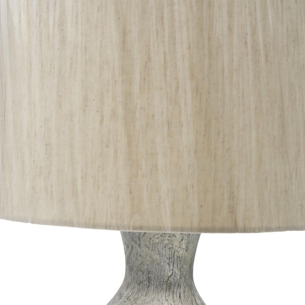 Sure to enhance the style of any space, this transitional glass table lamp features a bottle-shaped base with a foil mercury finish and a drum shade. The graceful curves of this table lamp make it a versatile accent that blends well with any decor. With its curving glass base, this lamp is a stunning addition to a table in any bedroom, living room, office, or foyer.