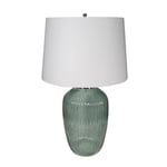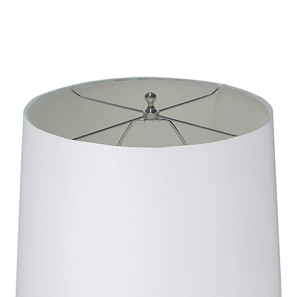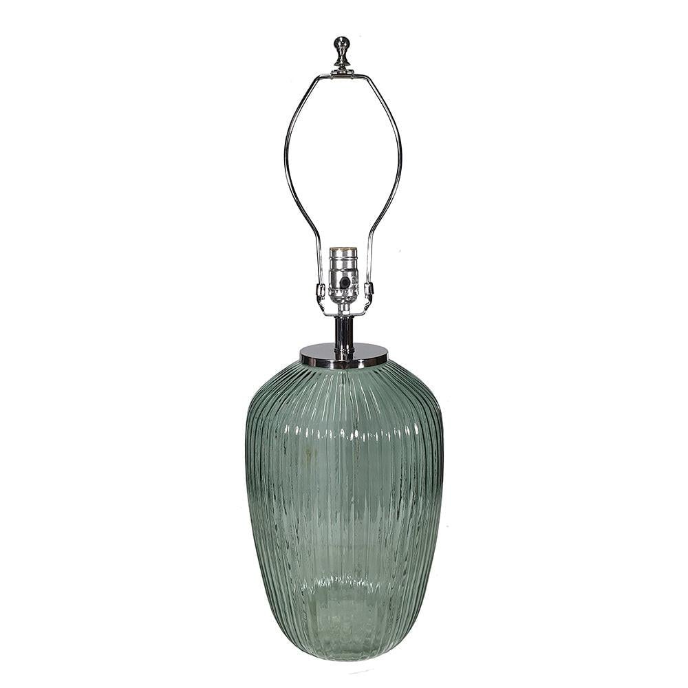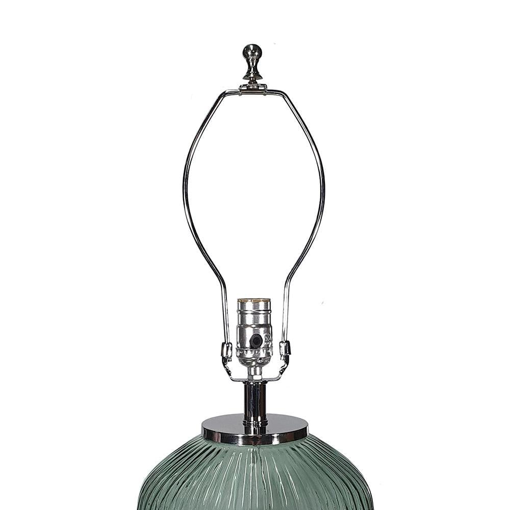 This plug-in, energy-efficient table lamp boasts a dazzling body and drum shade.