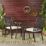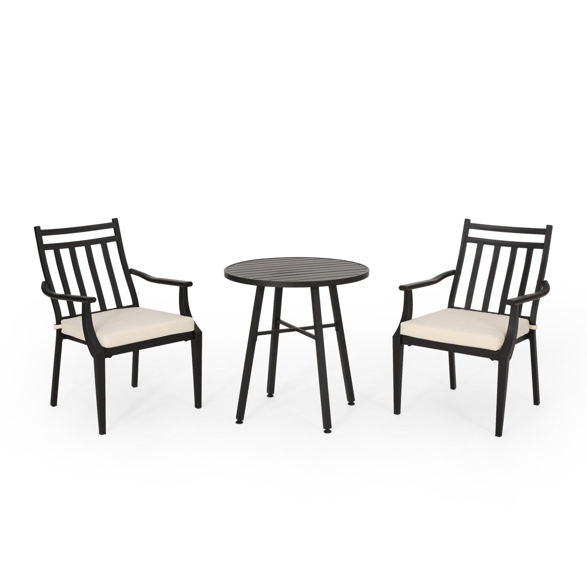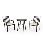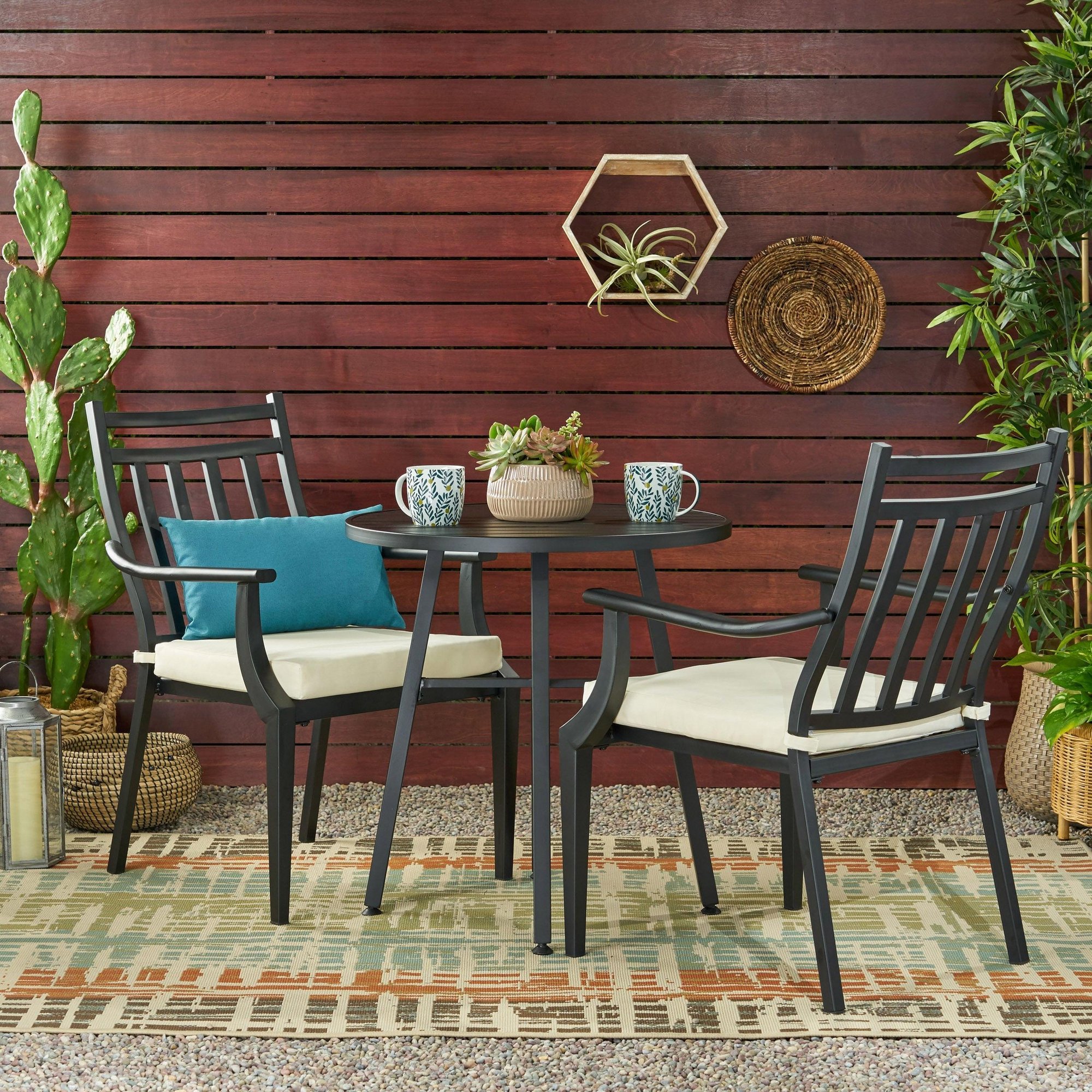 Transitional: the transitional style of this Bistro set is sure to give your outdoor space a minimalistic yet classic look that will match seamlessly with any arrangement you currently have. With a simple yet outstanding Slat design and curved armrests, this set will give your backyard an Instant upgrade in style and comfort.