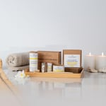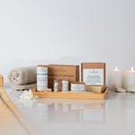 Includes: (1) Cleansing Bar, (1) Face Salve, (1) Lip Balm, (1) Deodorant, (1) Bamboo Toothbrush, (1) Floss, (1) Set of Cotton Buds