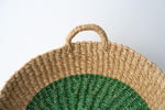 WOVEN TRAY MATERIALColor: Natural with inner - Yellow, Pink, Light Green, Mint Green or Chocolate - circleSpecs: 11" Diameter / 2"H Material: Seagrass