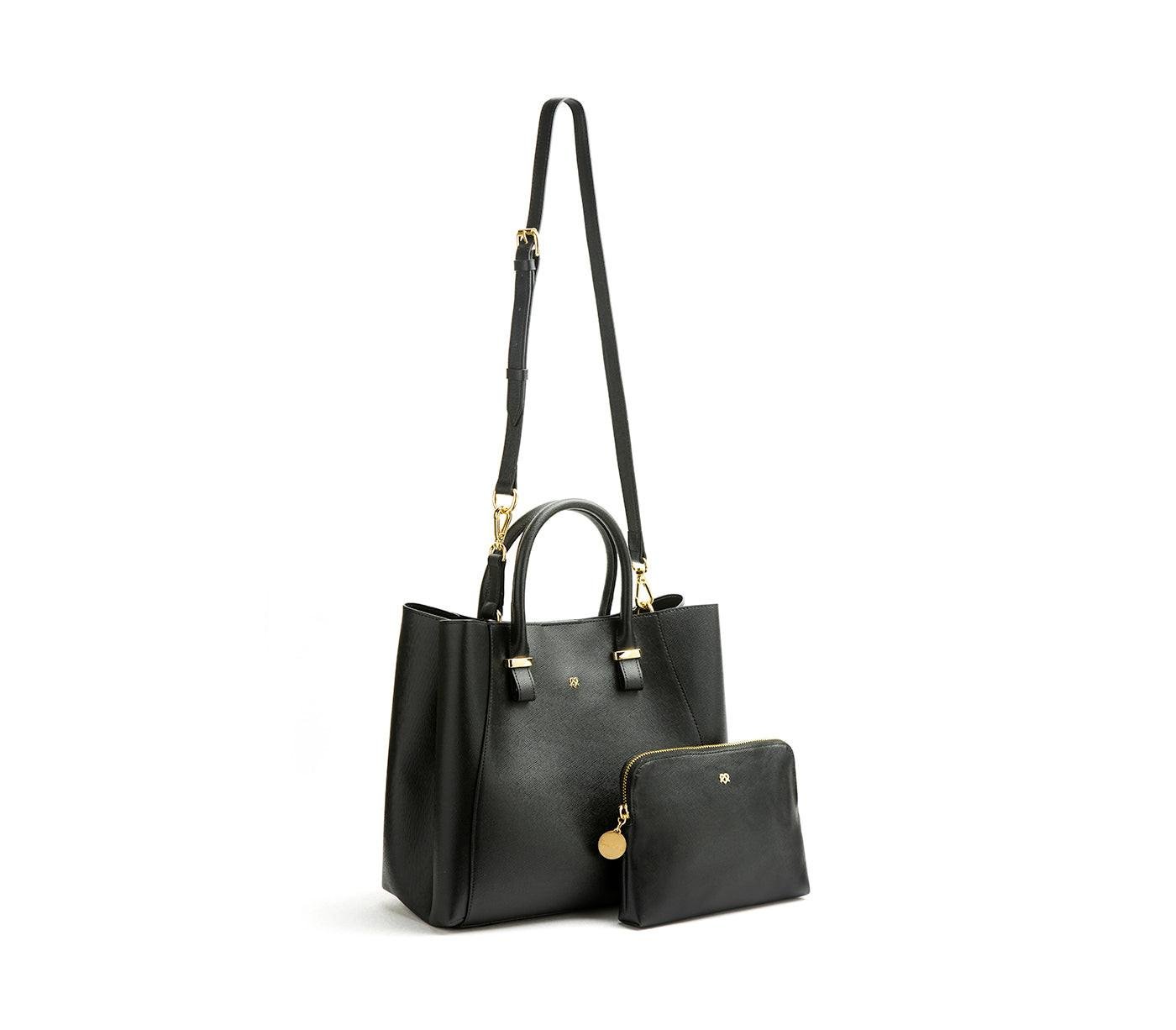 For the love of Chimpanzees! We are so inspired by the work and life of that we designed a bag as a dedication to her legacy. Poised, polished, and powerful, the Gunas Girl carrying the Jane Satchel from our Premium Collection, is the obvious boss of her world. It's fully appointed with every luxury handbag amenity your heart desires, including a removable and adjustable cross-body strap as well as our signature gleaming hardware. Enjoy the added bonus removable make-up bag for your cruelty-free beauty essentials or use it as a mini clutch for when you are on the go.