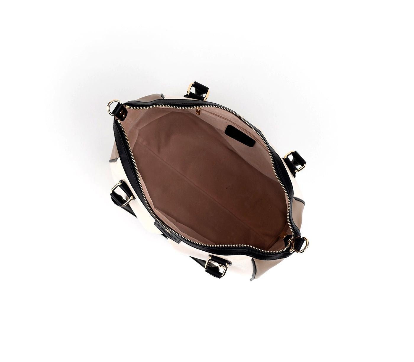 Our iconic Madison bag with all the facelifts and upgrades you can imagine! Extended over the shoulder straps, custom logo zipper pulls and many bells and whistles make this upgrade worth the splurge. The Madison PE is a cool spin on wardrobe classics and an essential, must have silhouette for any closet. It is our feather light everyday bag that can be worn on the shoulder or across using the detachable body strap. The convenient outer pocket makes your keys and cellphone accessible. Featured here in a classic limited edition beige trio combination.