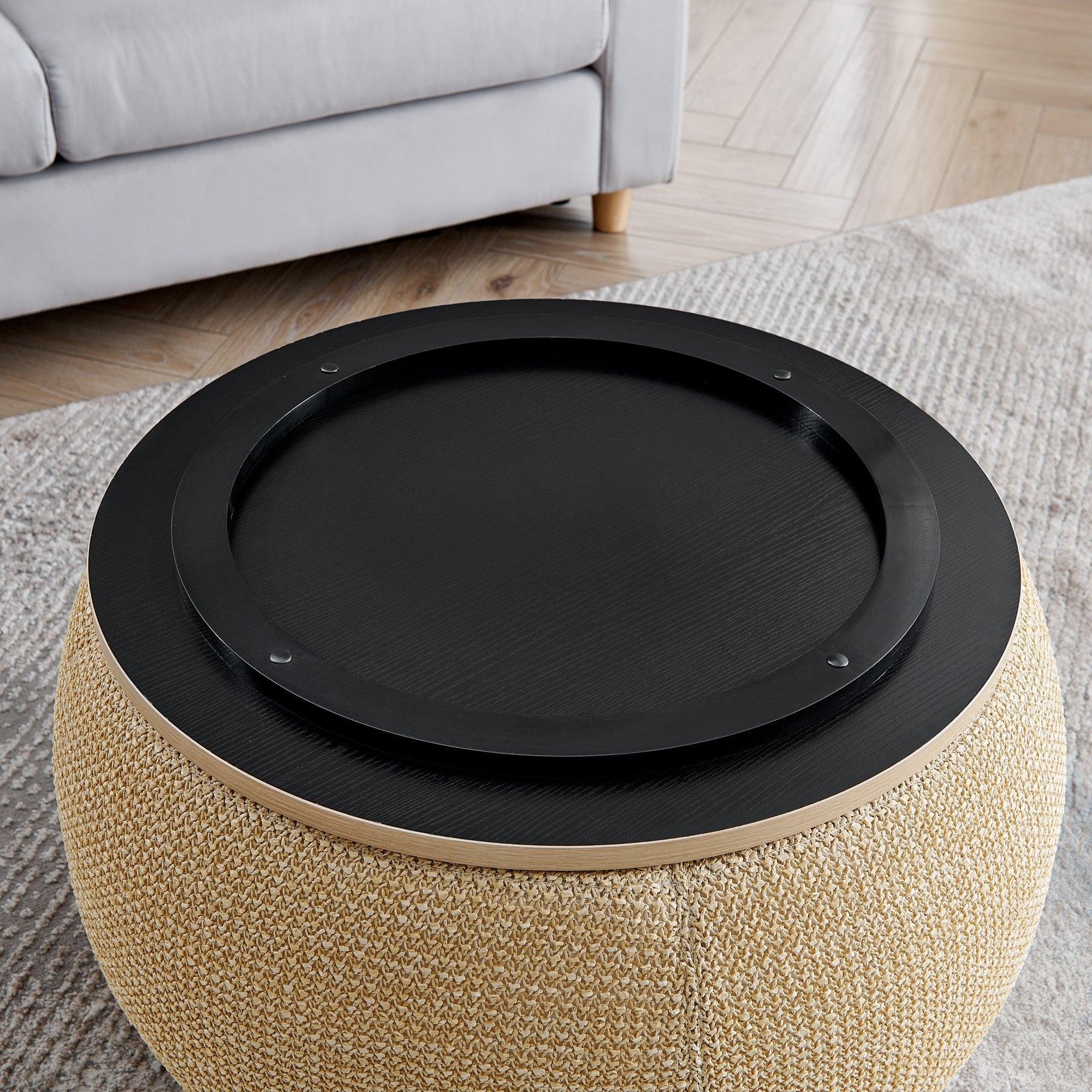 Original product name: Round Storage Ottoman, Woven Rattan Fabric Ottoman, 2 in 1 Function, Work as End Table and Ottoman,with Small Seat-Natur