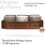 Discover fast-cooling non-diluting round solid granite stones used to perfectly cool fine spirits without watering down your drink. Each of our 6 whiskey stones has a different color and granite-style making each set unique and stand out beautifully. Elevate your drinking experience or spoil a loved one with our bestseller.